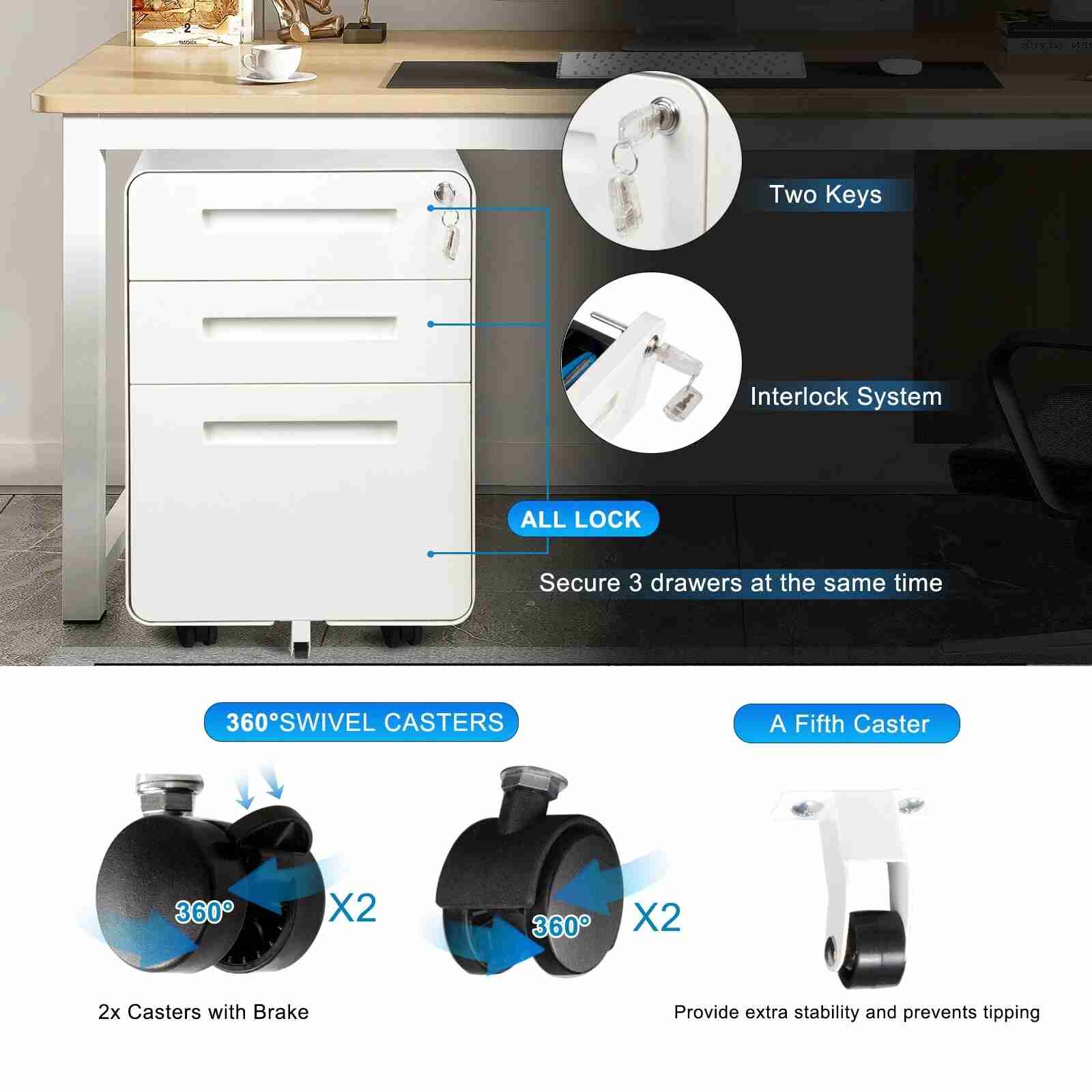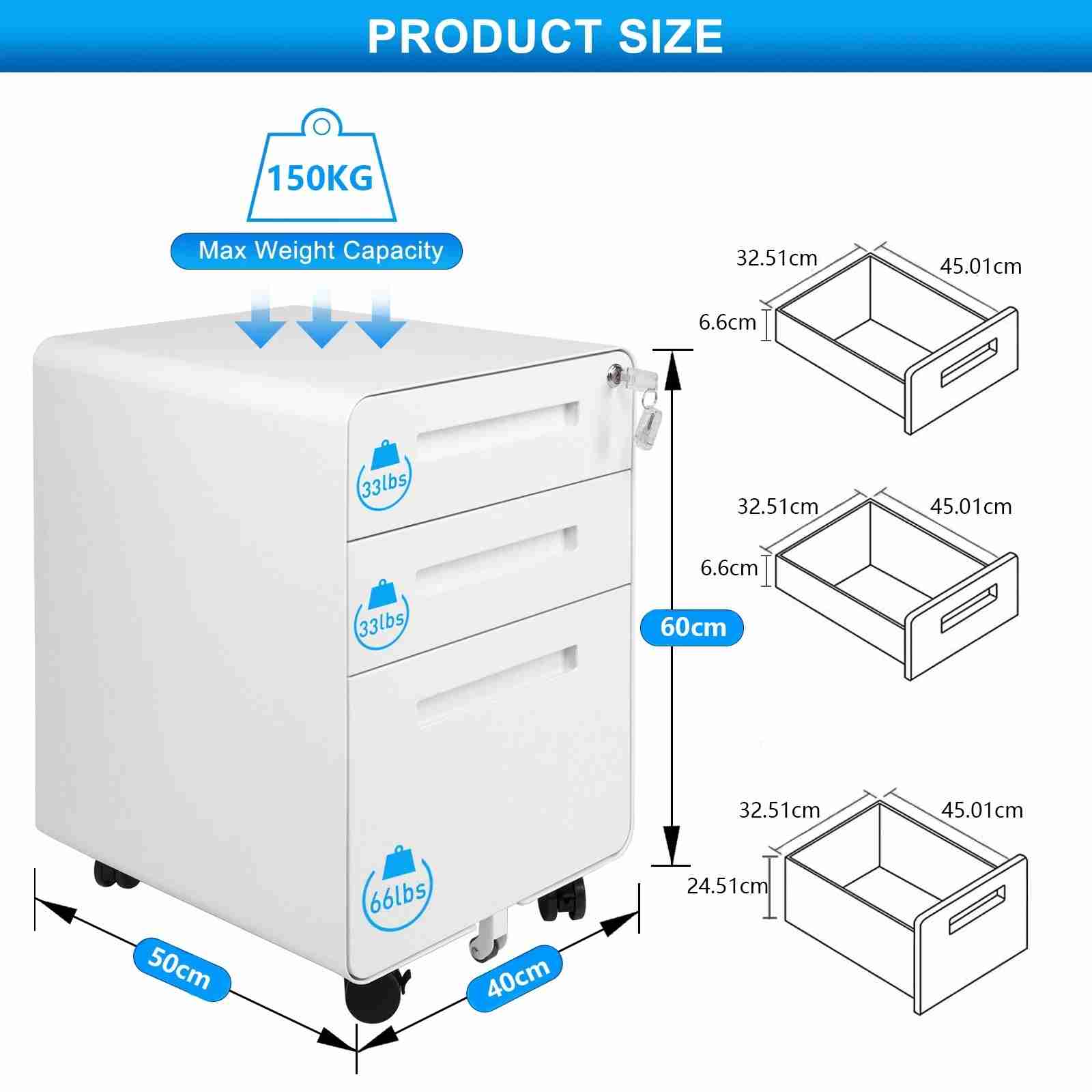 英文名称: | Mobile 3 Drawer Pedestal Cabinet white |